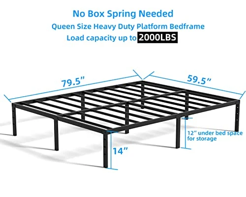 - Queen Bed Dimension: 79.6″ x 59.6″ x 14″(LxWxH), matches mattress size L80”xW60”