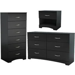3 Piece Modern Bedroom Furniture Set – 6 Drawer Black Dresser For Bedroom / 6 Tall Black Chest Of Drawers For Bedroom/Black Nightstand With Drawer And Shelf