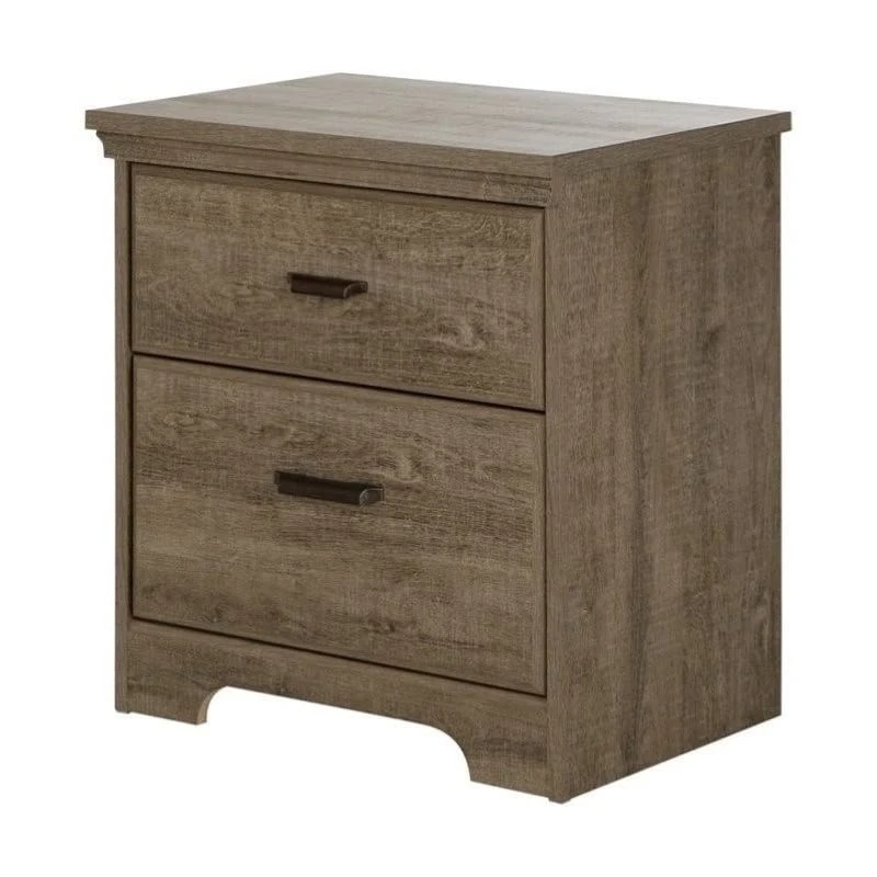 - 2 Drawer Wood Nightstand in Weathered Oak x 2.