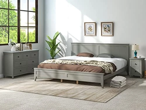 - 【Queen Size Platform Bed】This queen size platofrm bed frame with headboard features artful curves, appliqué trim inserts and tapered feet are masterfully crafted throughout the collection to bring a cohesive look to the room.This queen platform bed is crafted from solid rubber wood with 10 wood slat support to guarantee the stability and load-bearing capacity in long time usage.Queen size platform bed dimension:83.9“L x62”W x 46.5”H,weight capacity:550 LBS