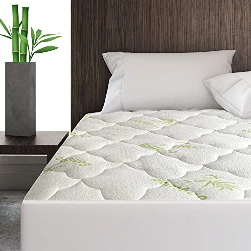 - Extra Plush Noiseless Padding: Quilted bamboo mattress pad twin adopts a slit cloud sewing design to avoid the filling from shifting or agglomerating. No rattling sound when turning over at night. After washing and drying, the quilted padding remains fixed in its original position, stable and durable.