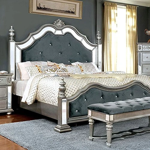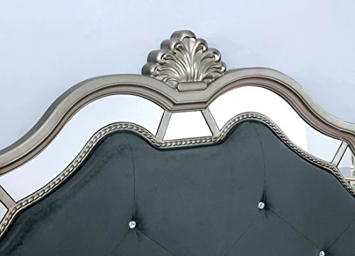 - Traditional Style Padded Gray Fabric on H/B and F/B Button Tufted 3mm Mirror Trim Inserts