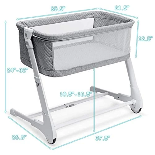 - 8 Position Adjustment: There are 8 adjustable heights, from 24” to 32”, to meet the need of parents of different heights. It is suitable for most beds and sofa, giving your baby ever-present care and protection. In addition to that, after feeding the baby, you can adjust the angle of the bassinet to prevent the baby from spitting milk.