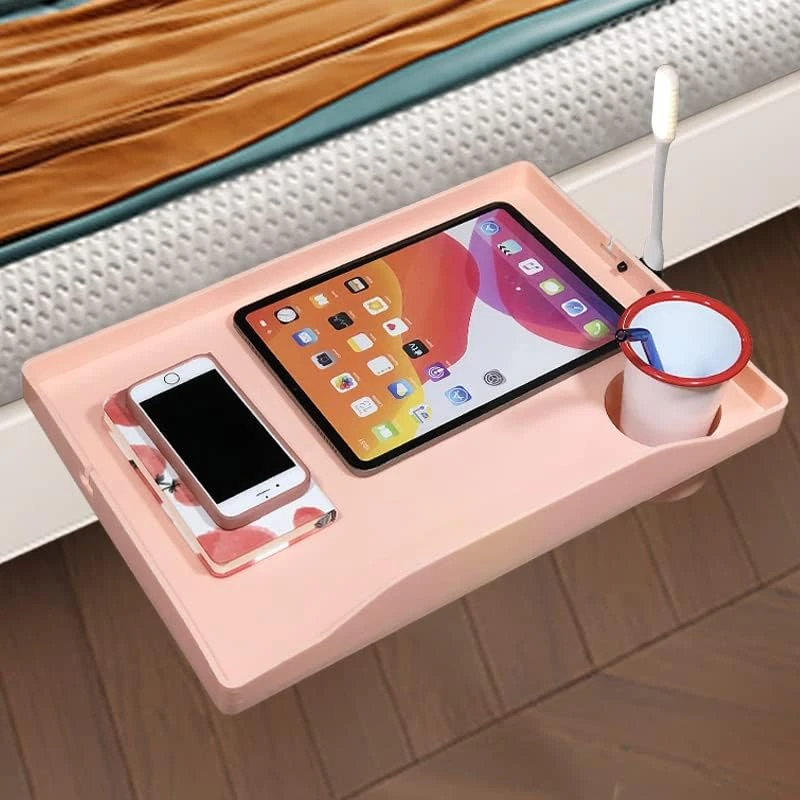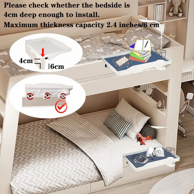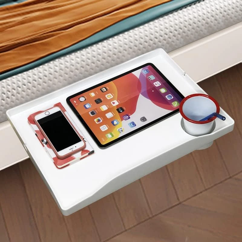 - NO TOOLS REQUIRED: Just hook the tray onto the side of your bed frame and twist in three screws on the back of the tray until it is securely .
