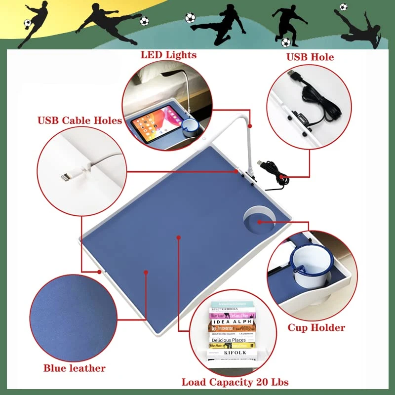 - PRODUCT BESIGN:The products are made of high-quality materials into modern matte plastic trays.At the bottom we designed three support rods and lines to enhance support and stability, and can withstand up to 20 pounds of weight.Both sides are designed with data cables to fix, with cup holders.The product is also equipped with a night light. When not in use, the UBS port can charge mobile phones and Bluetooth headsets…
