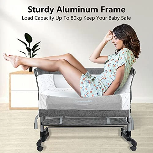 - 【Quick and Easy Installation】No tools needed while assembly, can be completed in 3 minutes. This bedside crib is constructed from a high-strength aluminum frame, solid structure, and stable bottom supported to ensure that it will not tilt to one side.