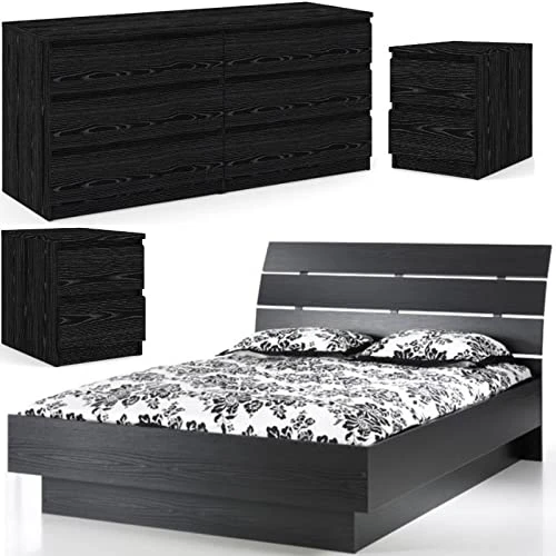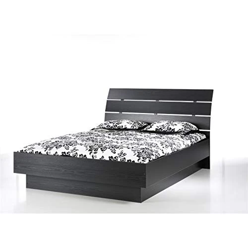 - Contemporary Wood Platform Queen Bed in Black Woodgrain x 1.