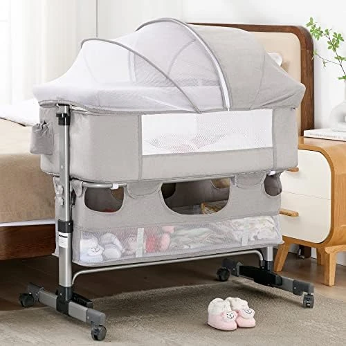 - 【Large Storage Space】Our baby bassinets bedside sleeper has a large under-storage space with oustanding weight capacity, parents can put lots of baby stuffs here and grab them easily for daily use. The bassinet also has a side pocket face to bed side to conveniently put milk bottle