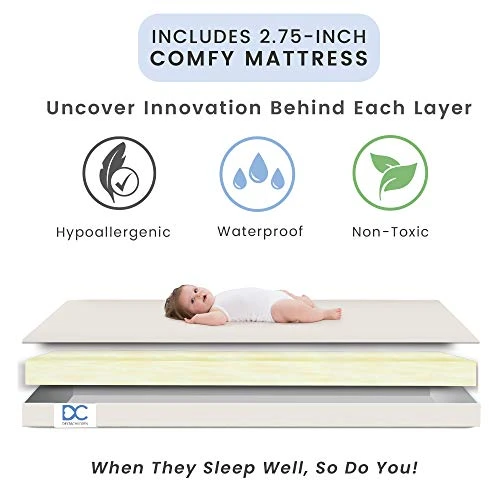 - Comfy mattress included: This mini crib includes a 2.75-Inch thick mini crib mattress that is extremely comfortable and water-resistant; mattress uses 24″ X 38″ Size sheets