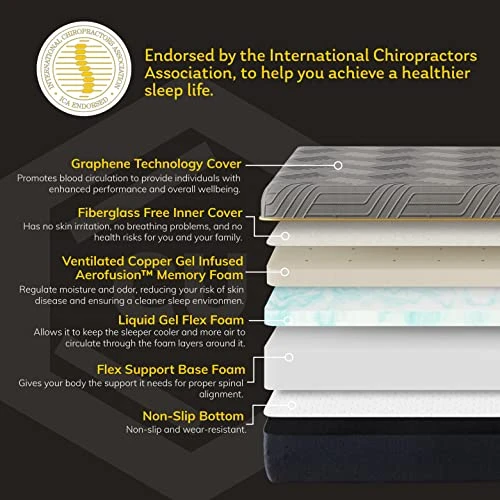- Graphene Technology Cover: Nylon-feel cover is deodorizing and antistatic qualities. Therapeutic properties from its far infrared fabric promotes blood circulation to provide individuals with enhanced performance and overall wellbeing.