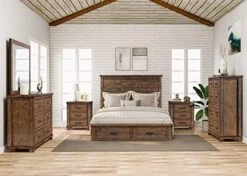 - Included: 1 xQueen Storage Bed; 2 x Three Drawer Reclaimed Wood Nightstands; 1 x 6 Drawer Dresser; 1 x 5 Drawer Chest; 1 x Reclaimed Pine Wood Mirror.