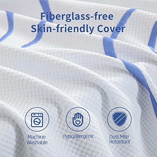 - Skin-friendly and healthy cover – The memory foam has been certified by CertiPUR-US and Oeko-Tex Standard 100 as free of harmful substances such as formaldehyde, mercury and other heavy metals, ensuring you a healthy night’s sleep. The fabric of the cover is skin-friendly and the top half of the cover can be easily removed for machine washing, making it an ideal choice for premium bedding.