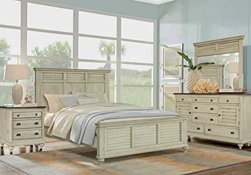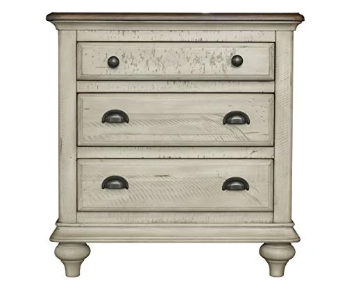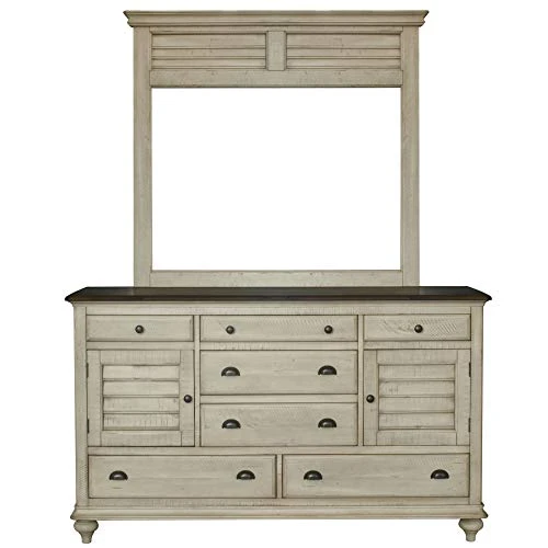 - Sandy beach inspired textured, yet smooth finish, wire brushed by hand for a rustic look | Antique black solid steel cup handles, knobs and hinges add vintage flair | Distressed tropical brown quarter rounded 1” thick solid wood tops