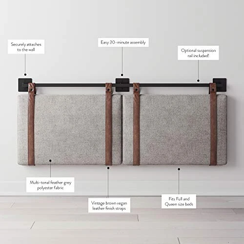- The Harlow wall-mount headboard has an easy 30-minute assembly.