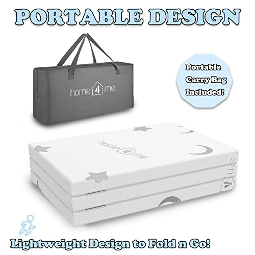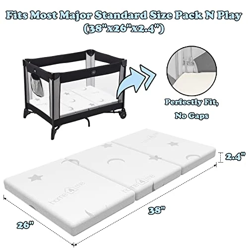 - 【PORTABLE TRIFOLD PACK N PLAY MATTRESS】:This trifold pack n play mattress, which comes with a storage bag, can be carried during travel or camping or picnics to provide a place for baby to play; the mattress is small when folded and can be placed in any corner, saving a lot of space.