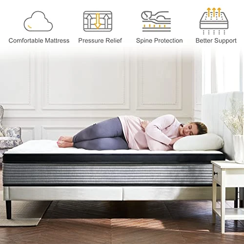- 🌙 MOTION ISOLATION:The mattress adopted individual pocket coils maintains spinal health. The memory foam mattress also helps you maintain a proper sleeping position and distributes your weight from toe to head evenly throughout the king mattress.