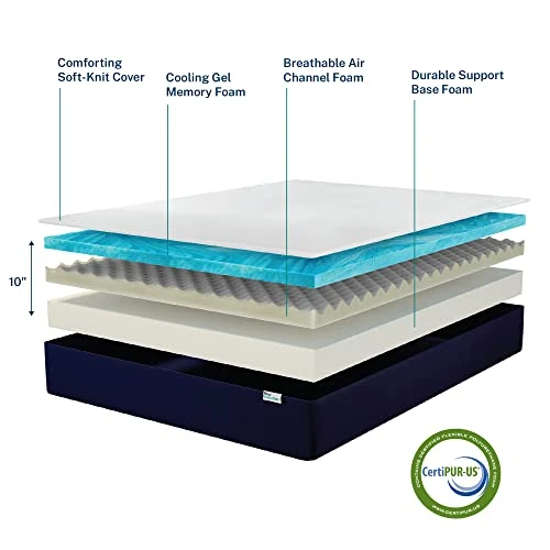 - Cooling Comfort: This queen memory foam mattress features cooling gel foam and an airflow channel for enhanced breathability, so you sleep cool all night every night