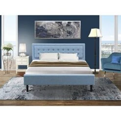- This 2 Piece wooden set for bedroom includes a mid century bed, and 1 bedroom nightstand to attract everybody who arrives in your home. The innovative structure with linen fabric headboard decoration will add luster to any room in a distinctive way. Update your bedroom with this attractive versatile style king size bed set to offer a unique appeal.