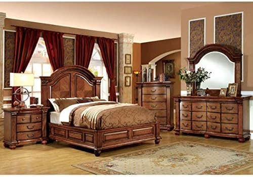 - Item Measurements: Queen Bed: 70 inches high x 87 inches long x 71 inches wide; Nightstand: 32 inches high x 34 inches wide x 20 inches deep; Chest: 53 inches high x 41 inches wide x 22 inches deep; Dresser: 68 inches wide x 22 inches deep x 36 inches high; Mirror: 45 inches high x 54 inches wide x 4 inches deep