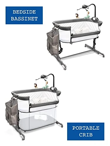 - MULTIFUNCTIONAL: Our product can do things most other bassinets can’t. Easily and quickly convert between co sleeper, rolling bassinet, mini crib, and play pen functionalities. Bedside comfort and safety and a multitude of different bed heights have been taken into account. Choose between five heights to fit most bed sizes and secure with two safety straps to ensure you and your child can both rest comfortably and safely.