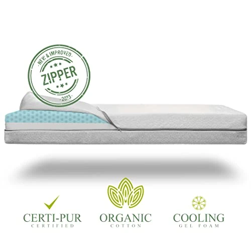 - PLUSH & MOLDABLE FOR TODDLERS | Flip Over the Mattress to Reveal a Soothing Memory Foam Layer That Contours to Your Growing Toddler’s Neck, Back, Legs & Body | Ultra Soft, Breathable, Cooling Gel Foam Material Supports Healthy Posture, Enhances Relaxation & Helps Diffuse Heat for All-Season Safety & Comfort