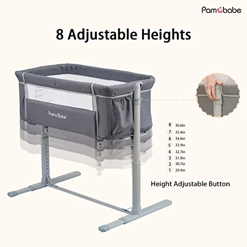 - ć8 Height Adjustableć8 height positions to suit parents’ bed. Easy-open side panel for bedside mode. Two-side mesh design makes more breathable and visible room.