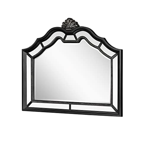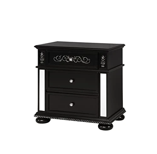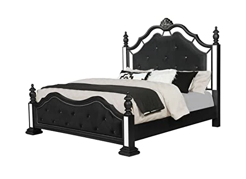 - Dramatic Black Finish, Silver Highlights, Tufted Headboard And Footboard, Faux Diamond Inserts, Mirror Accents Galore, Full Extension Drawer Glides