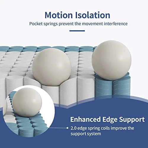 - 【Quiet and Hassle-Free Sleep】Our queen bed mattress is supported by hundreds of individual pocket springs and the spring is wrapped in non-woven fabric individually, which can block the effect from your partner’s movement and ensure your sleeping quality, makes you sleep through the night without disturbance.