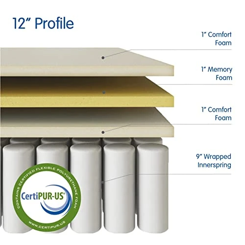 Quilted Gel Memory Foam And Innerspring Hybrid Pillow Top 12-Inch Mattress | CertiPUR-US Certified | Bed-in-a-Box Queen