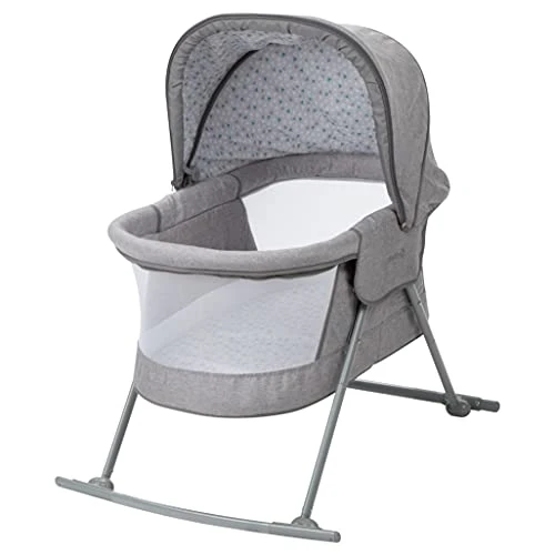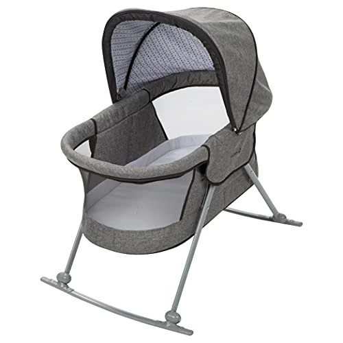 - Lays flat and rocks side to side to gently lull baby to sleep