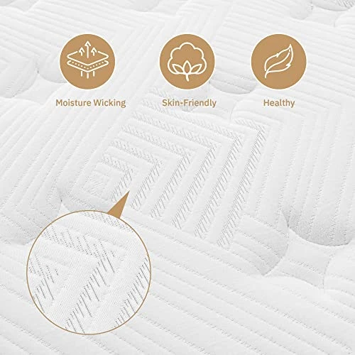 - 【Motion Isolation & Edge Support】 Medium firm mattress is designed for all sleepers. Hundreds of individual pocket springs inside allows you to enjoy an undisturbed sleep even if your partner tosses and turns at night. This mattress provides sleepers with perfect head-to-toe support, with reinforced edge-to-edge support to prevent sagging and rolling.