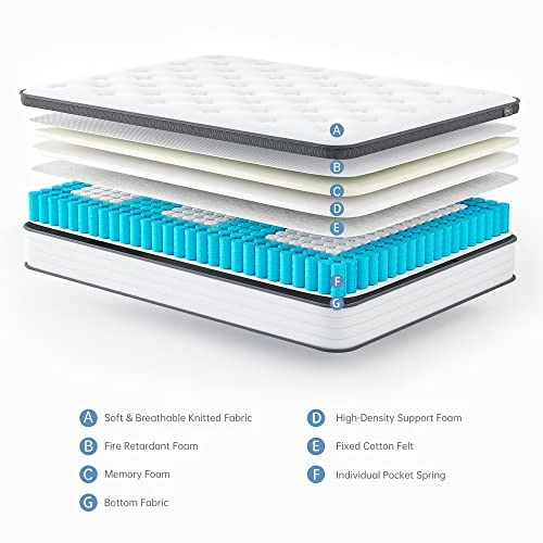 - 【Memory Foam & Innerspring Hybrid】 TeQsli 12 inch twin size mattress combines memory foam with individually pocketed spring. The memory foam is Certipur-US certified to help distribute heat from your body. Individually pocketed springs balance the pressure on your body to keep your spine healthy. It allows you to sleep comfortably and have peace of mind.