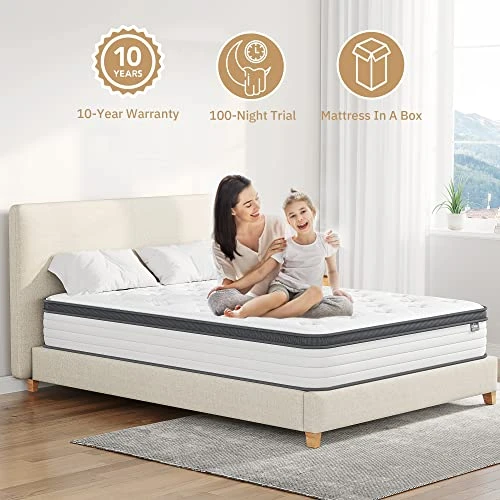 - 【Mattress in a Box & Fits All Bed Frames】 Hybrid Mattresses are delivered compressed, rolled, vacuum sealed and boxed for easy and fun setup. And our mattress works perfectly for most platform bed frames, traditional frames, box springs, and even floors. We recommend placing in a ventilated area and waiting 72 hours to fully unfold after you receive the mattress.