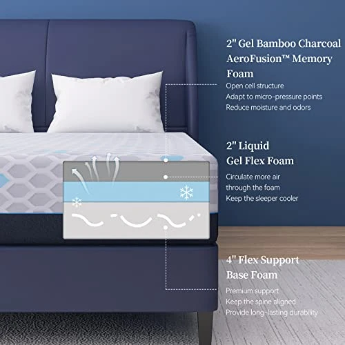 - 【Cooling Feel】The bamboo charcoal gel memory foam has an open cell structure that allows air to flow through the mattress so that the temperature of the mattress can be effectively controlled. Moreover, the middle layer that is infused with cooling gel can also keep your temp regulated! Even on a very hot and humid night, you can still enjoy a cool and comfortable night’s sleep. It is perfect for HOT Sleepers.