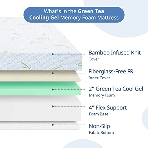 - Patented gel AeroFusion memory foam with soft bamboo cover that regulates temperature for a fresh and cool night’s sleep. You’ll find when laying on it, you won’t get as hot and sweaty as you have on other mattresses.