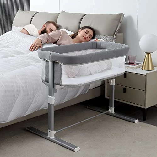 - 9 HEIGHT ADJUSTABLE – This bedside crib has 9 position adjustment for bed height: 19″ – 26.5″. So you can snug it up to beds of various heights, as well as a couch or other transitional space. It makes your infant is by your side like co-sleeping.
